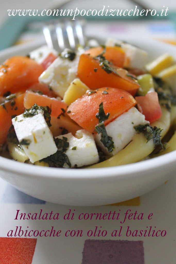 INSALATA DI CORNETTI FETA ALBICOCCHE E OLIO AL BASILICO