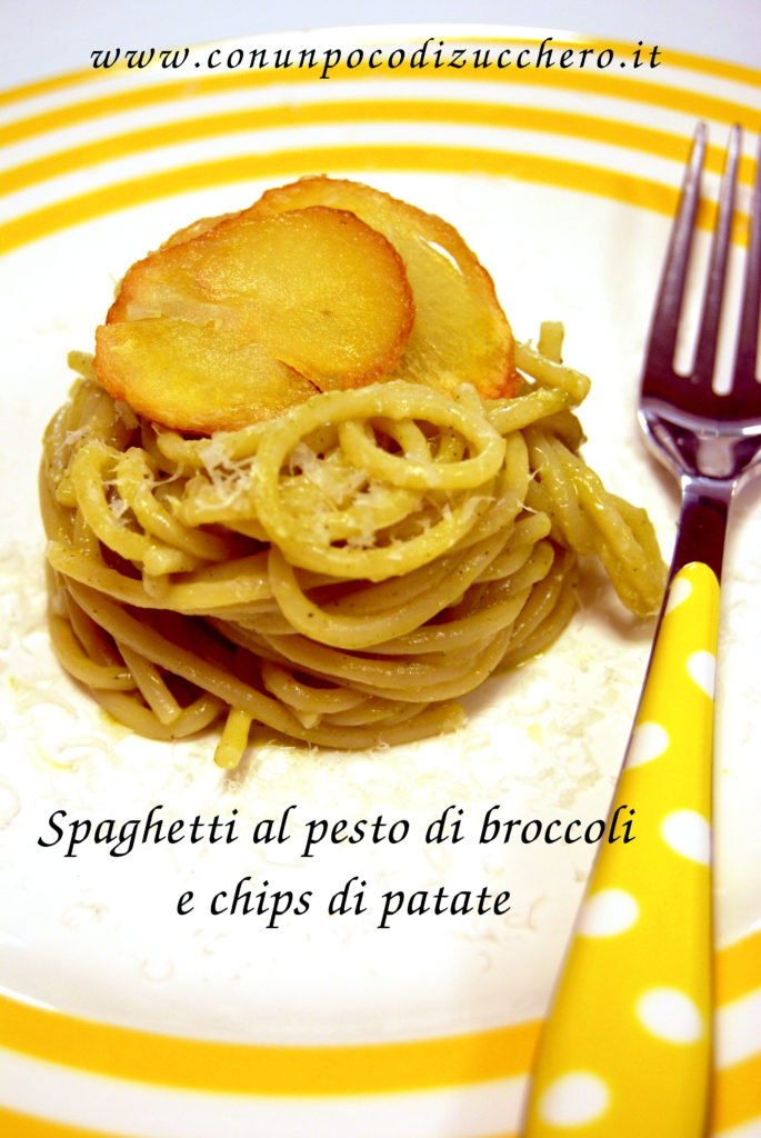 SPAGHETTI AL PESTO DI BROCCOLI E CHIPS DI PATATE