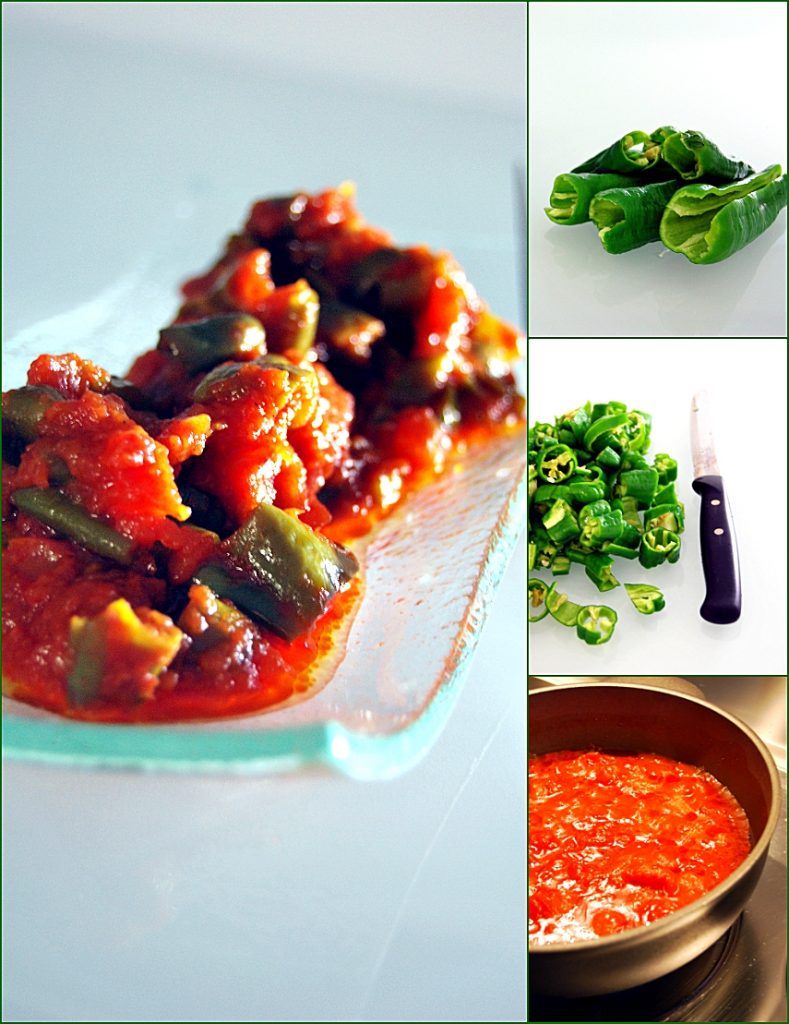 Cut them into small pieces and add them to the tomato sauce. Stir, cover with a lid and simmer for 15 minutes. Add salt and pepper, a little more oil and serve warm as a side dish to meat or cheese.