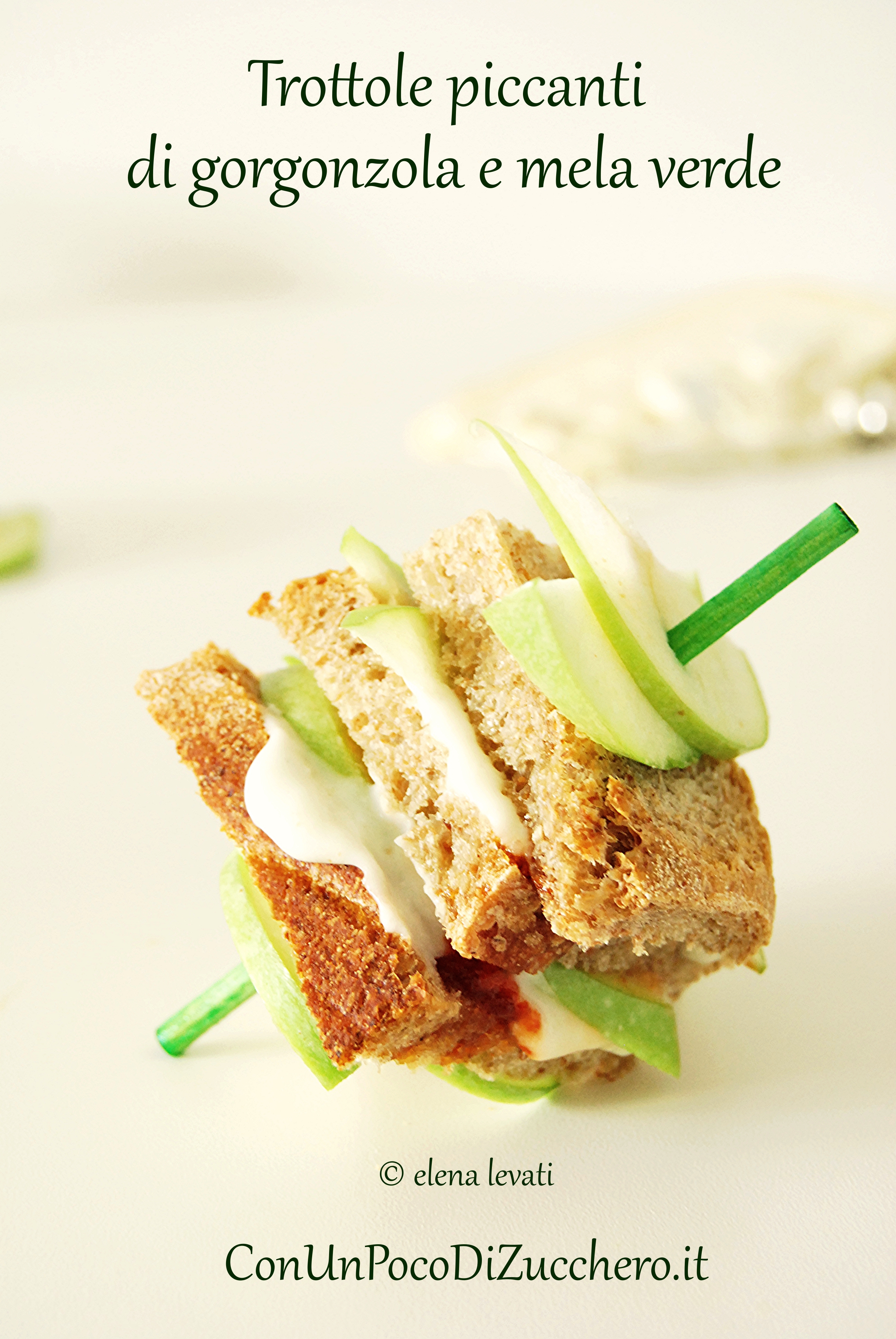 APERITIVO D’AUTUNNO: TROTTOLE E TORRETTE PICCANTI DI PANE, GORGONZOLA MANTECATO E MELA VERDE