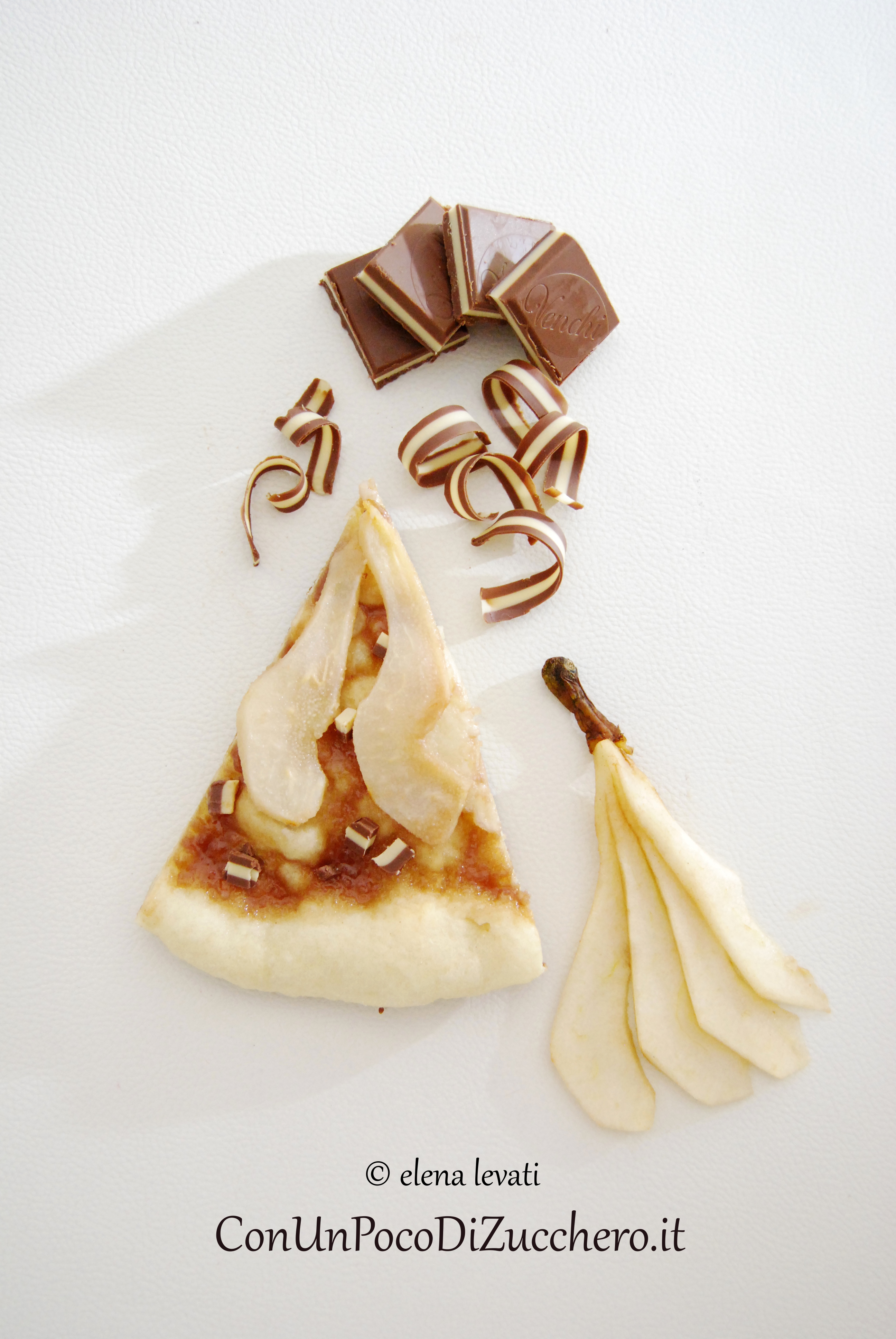 SWEET PIZZA WITH CHOCOLATE AND PEARS IN SYRUP