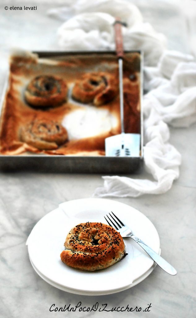 - Arrotolate quindi ogni striscia su se stessa formando una girella e disponetele su una teglia rivestita di carta forno.