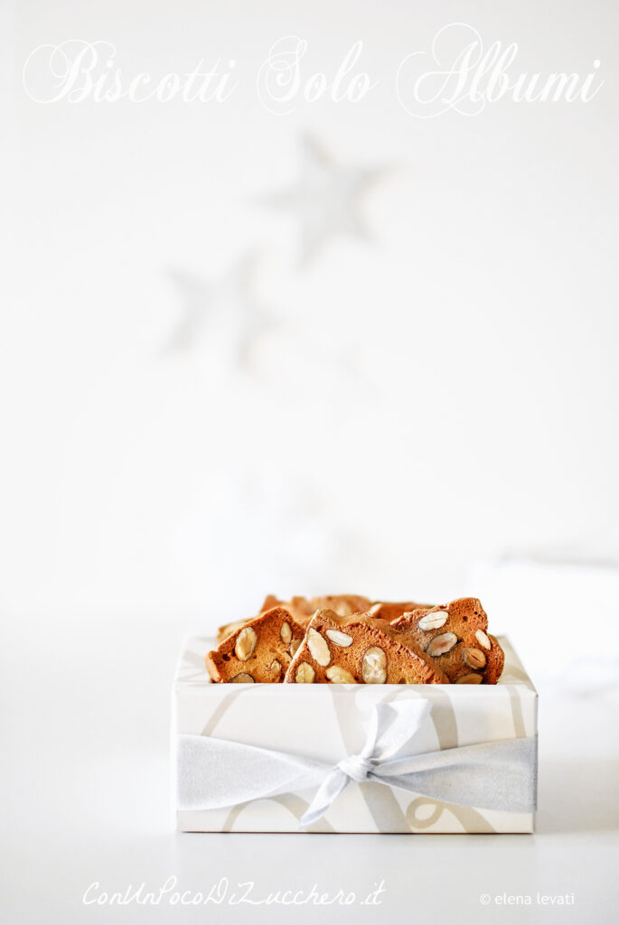 Non impigritevi proprio adesso, non chiudete le porte della cucina al dolce e aspettate ancora un attimino a concentrarvi sul pranzo del 25. Datemi retta, solo un momento ancora per biscottare potete prendervelo. Mettetevi il grembiule e accendete il forno: perchè questi biscotti solo albumi con mandorle, nocciole e miele si preparano in pochissimo tempo e con pochissima fatica ma, in compenso, sono squisiti, vi permettono anche di riciclare gli albumi che (probabilmente) avete per casa a seguito dalla preparazione di biscotti di frolla e panettoni e sono una idea regalo fantastica!