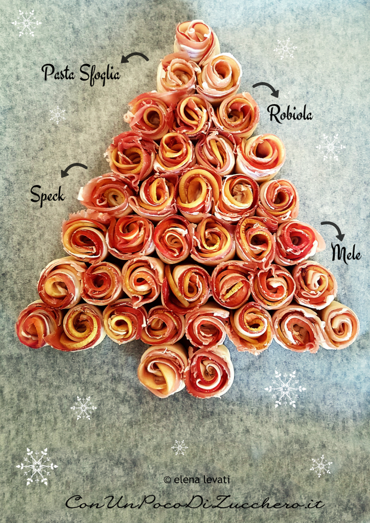 ALBERO DI NATALE DI MINI ROSE DI SFOGLIA ALLO SPECK E MELE