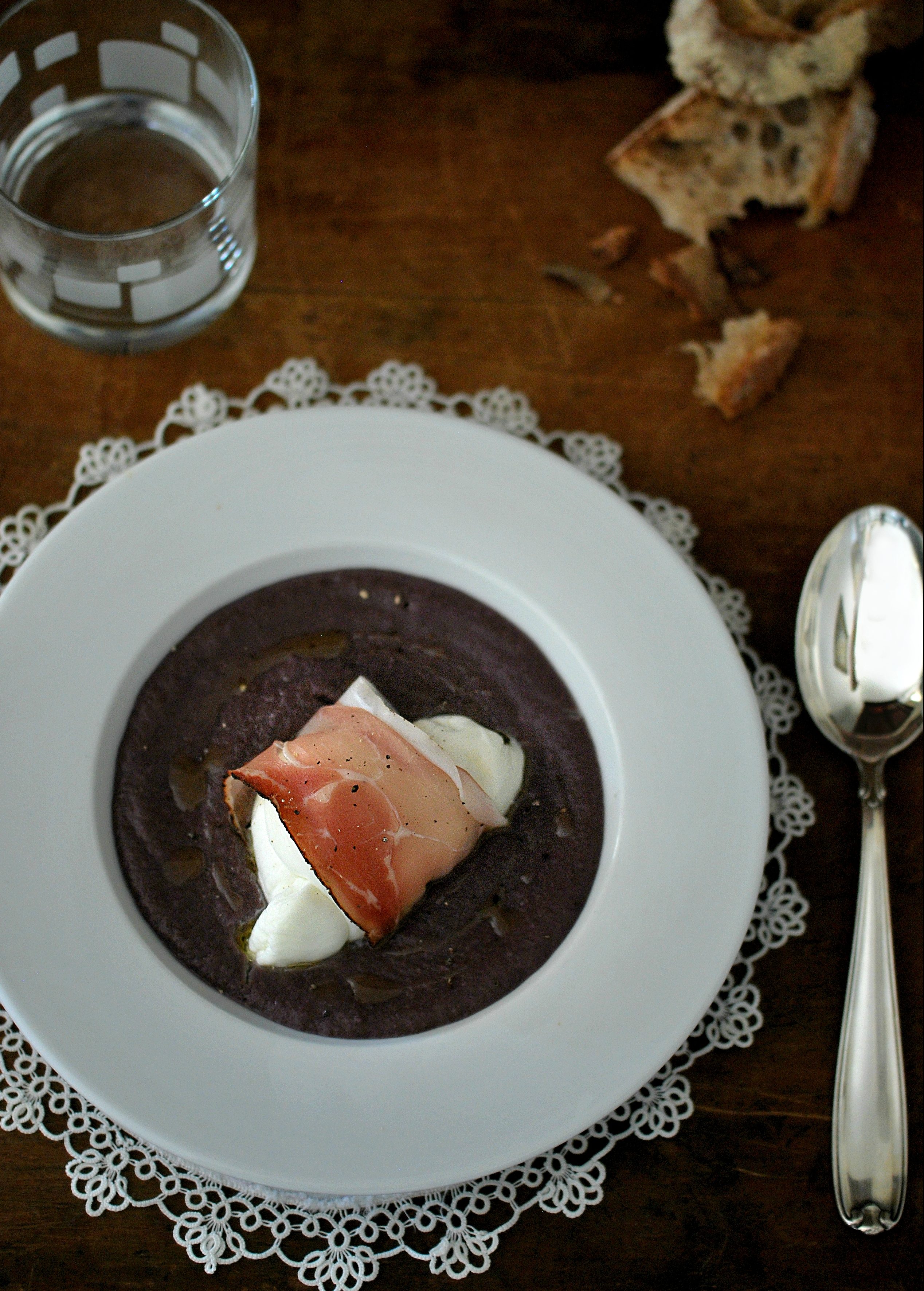RADICCHIO AND PURPLE CABBAGE CREAM WITH MOZZARELLA AND SPECK