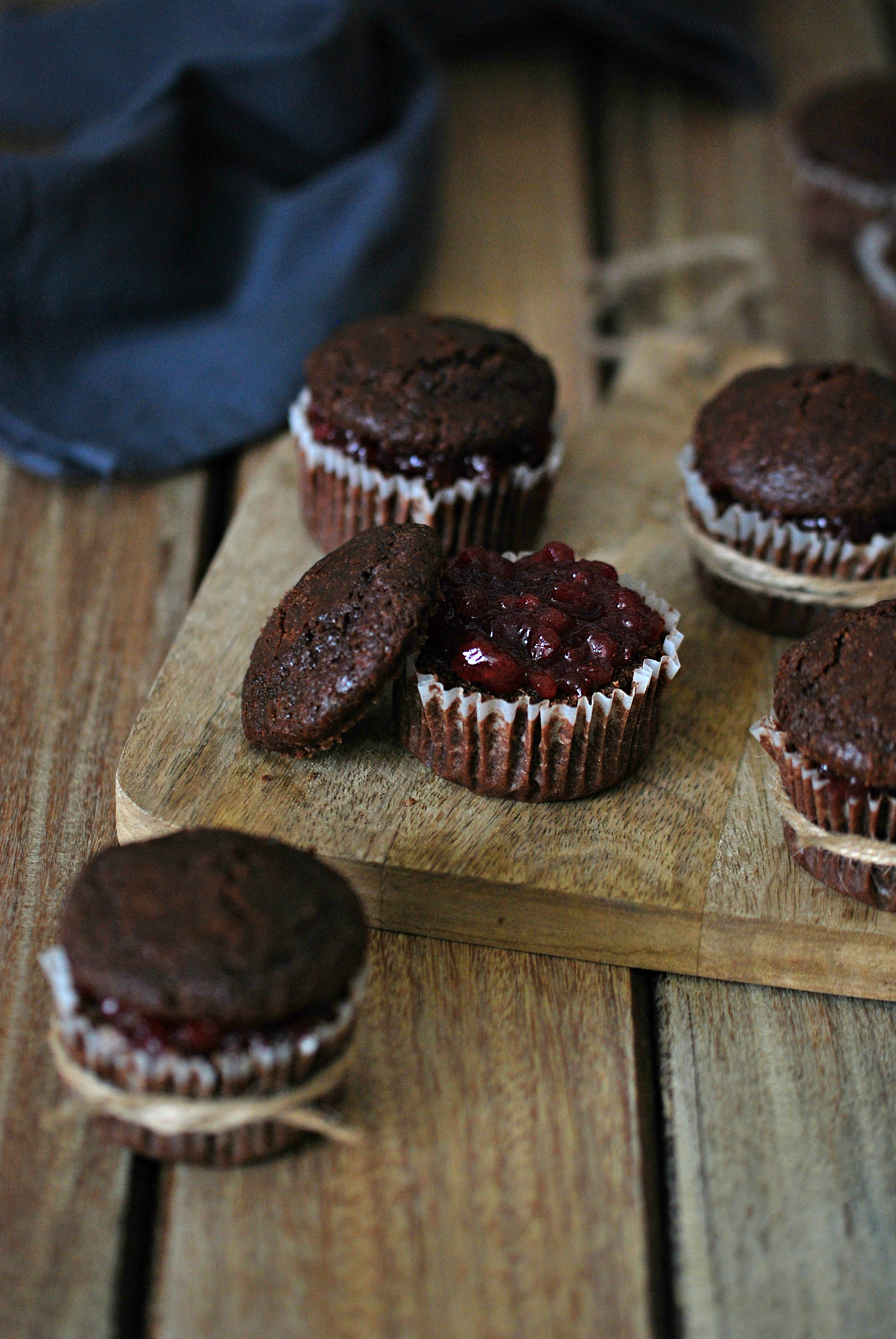 BUCKWHEAT MUFFINS WITH CHOCOLATE AND LINGONBERRIES JAM