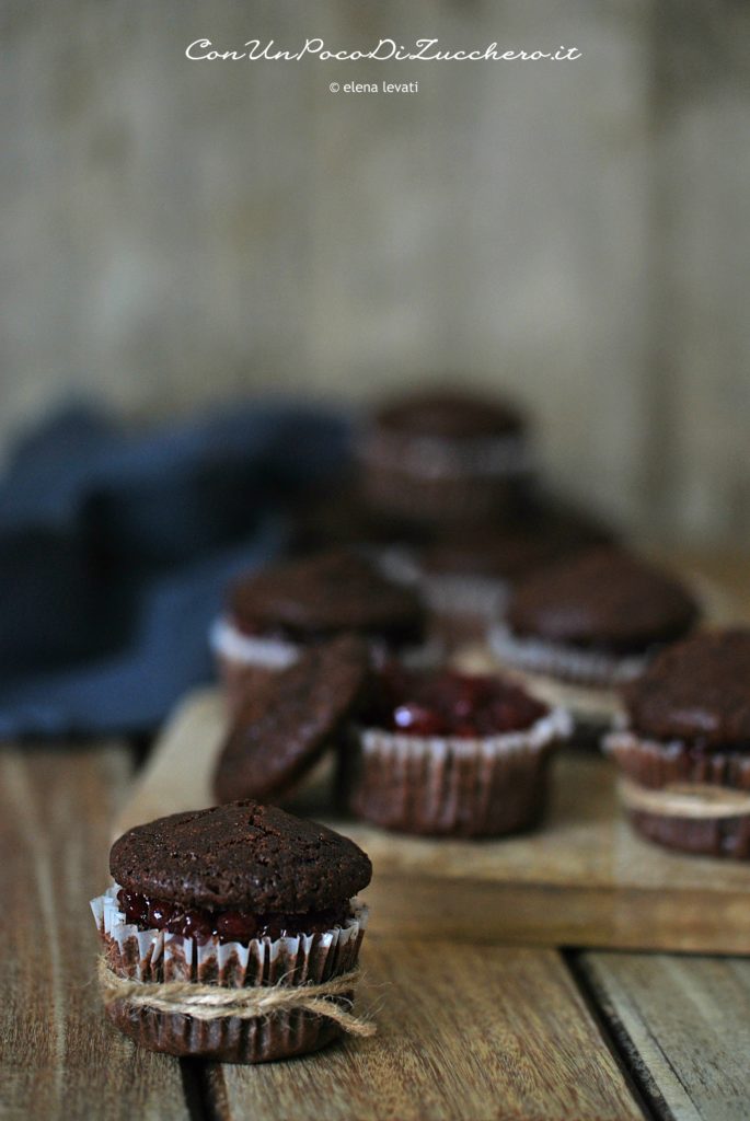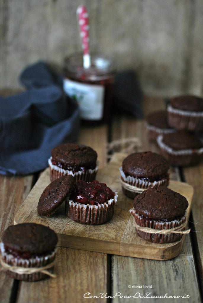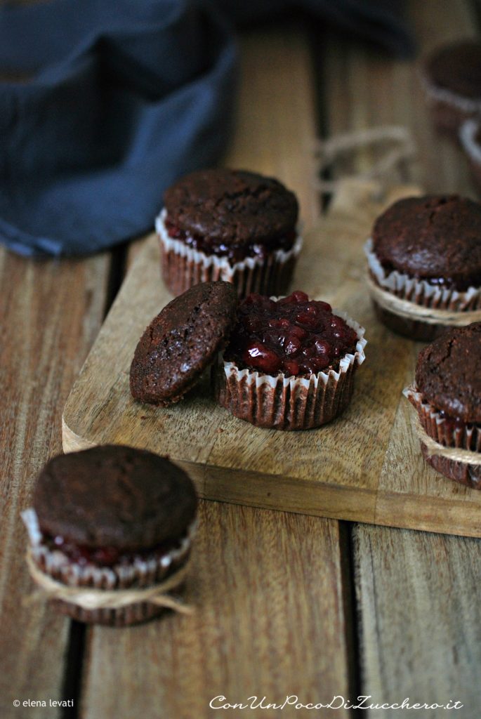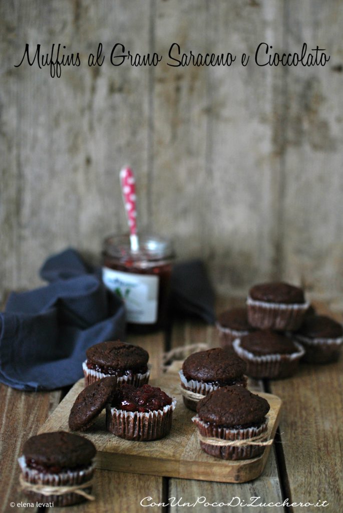 MUFFINS DI GRANO SARACENO E CIOCCOLATO CON CONFETTURA DI MIRTILLI ROSSI