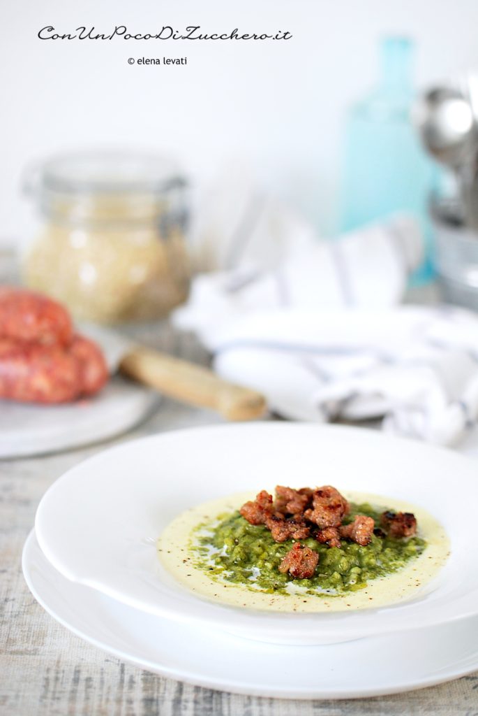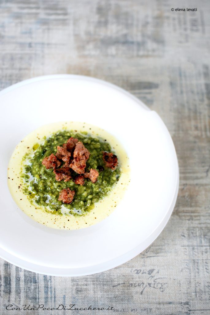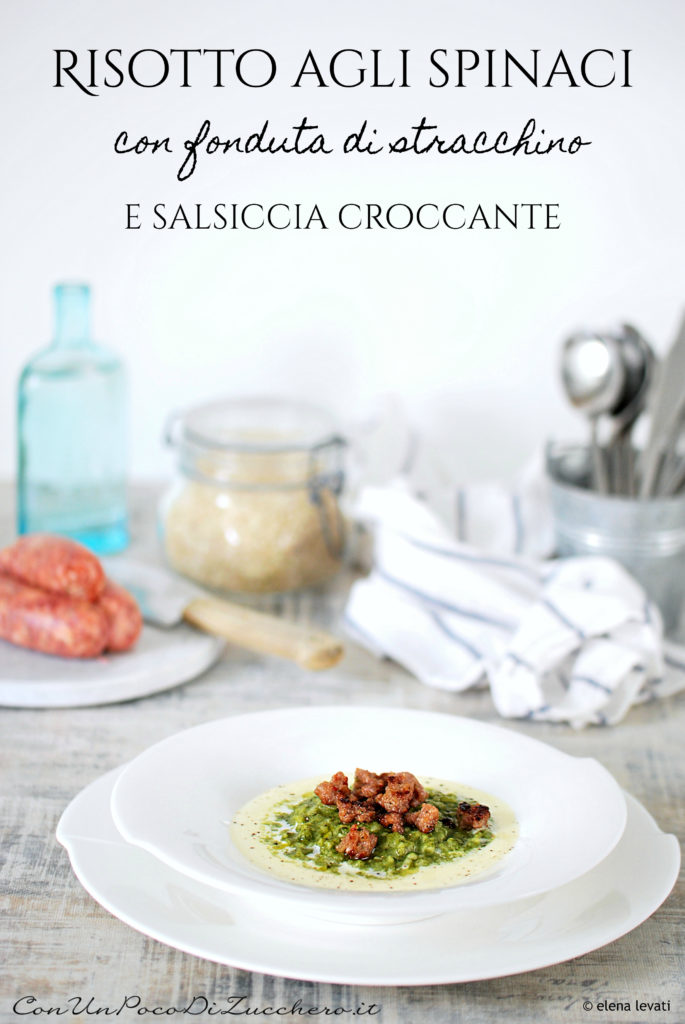RISOTTO AGLI SPINACI CON FONDUTA DI STRACCHINO E SALSICCIA CROCCANTE