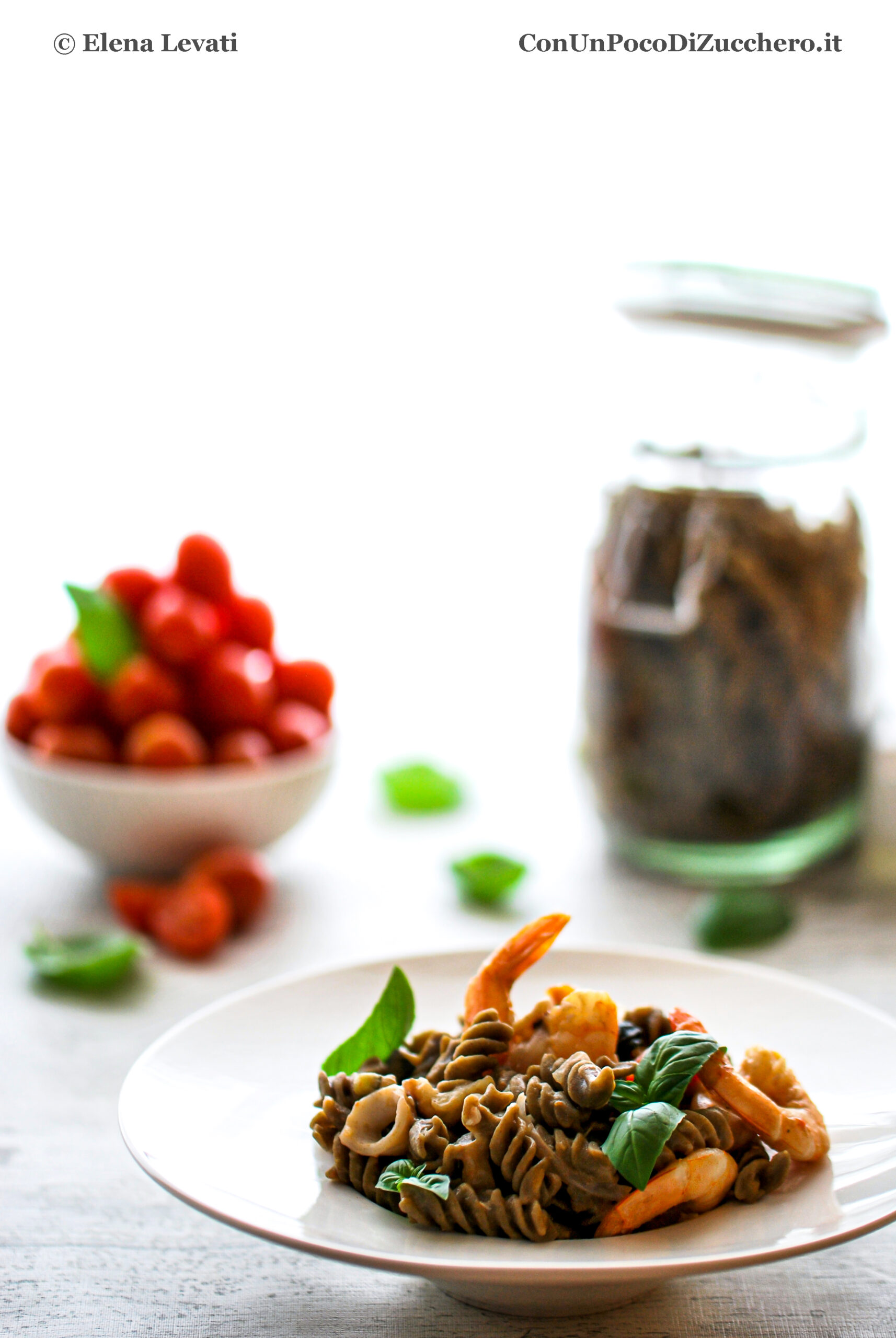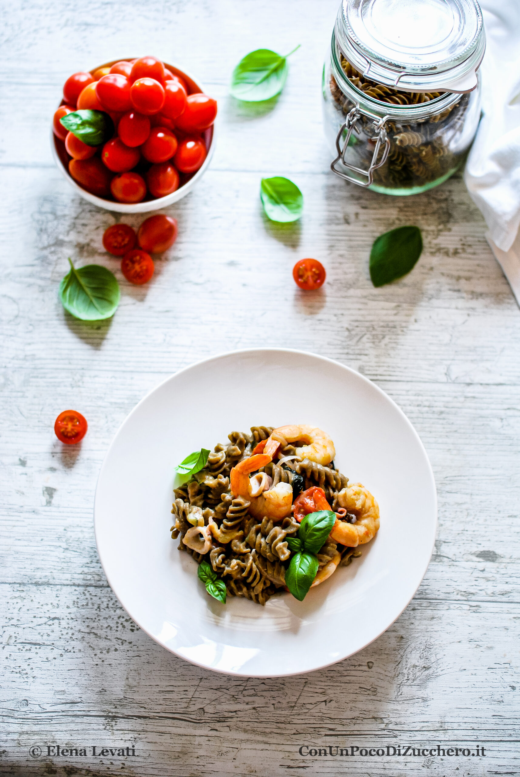 Zucchine, pomodorini, basilico, gamberi e calamari sono gli ingredienti fondanti di questa pasta che, oltretutto, ha una marcia in più: non ho infatti utilizzato la pasta di grano per questa ricetta, bensì una pasta di legumi e, in particolare, di lenticchie!