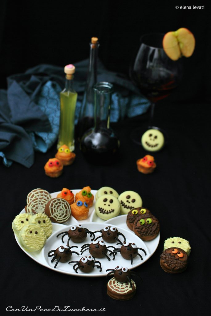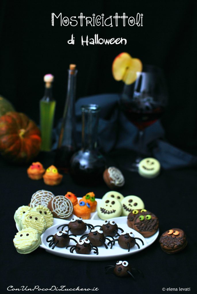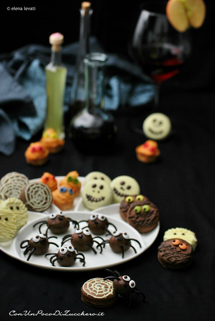 Livello: facile Tempo: 1 ora e mezza + 40 minuti cottura + riposo Dosi: 20 dolcetti Oreo + 10 ragnetti + 20 mostriciattoli
