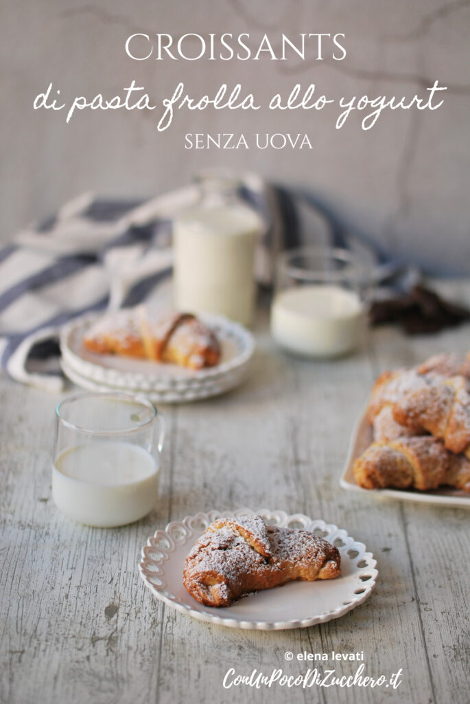 Imbrogliando allora ho preparato con Ludovica questi croissants di pasta frolla allo yogurt senza uova: decisamente con meno burro e zucchero rispetto alla classica frolla e con meno zucchero anche rispetto alla “sorella” pasta frolla allo yogurt con 1 uovo, questo impasto utilizza lo yogurt come legante al posto delle uova. I risultato è una frolla meno friabile della classica (e insostituibile), ma comunque buona e sicuramente più a cuore (di mamma) leggero!